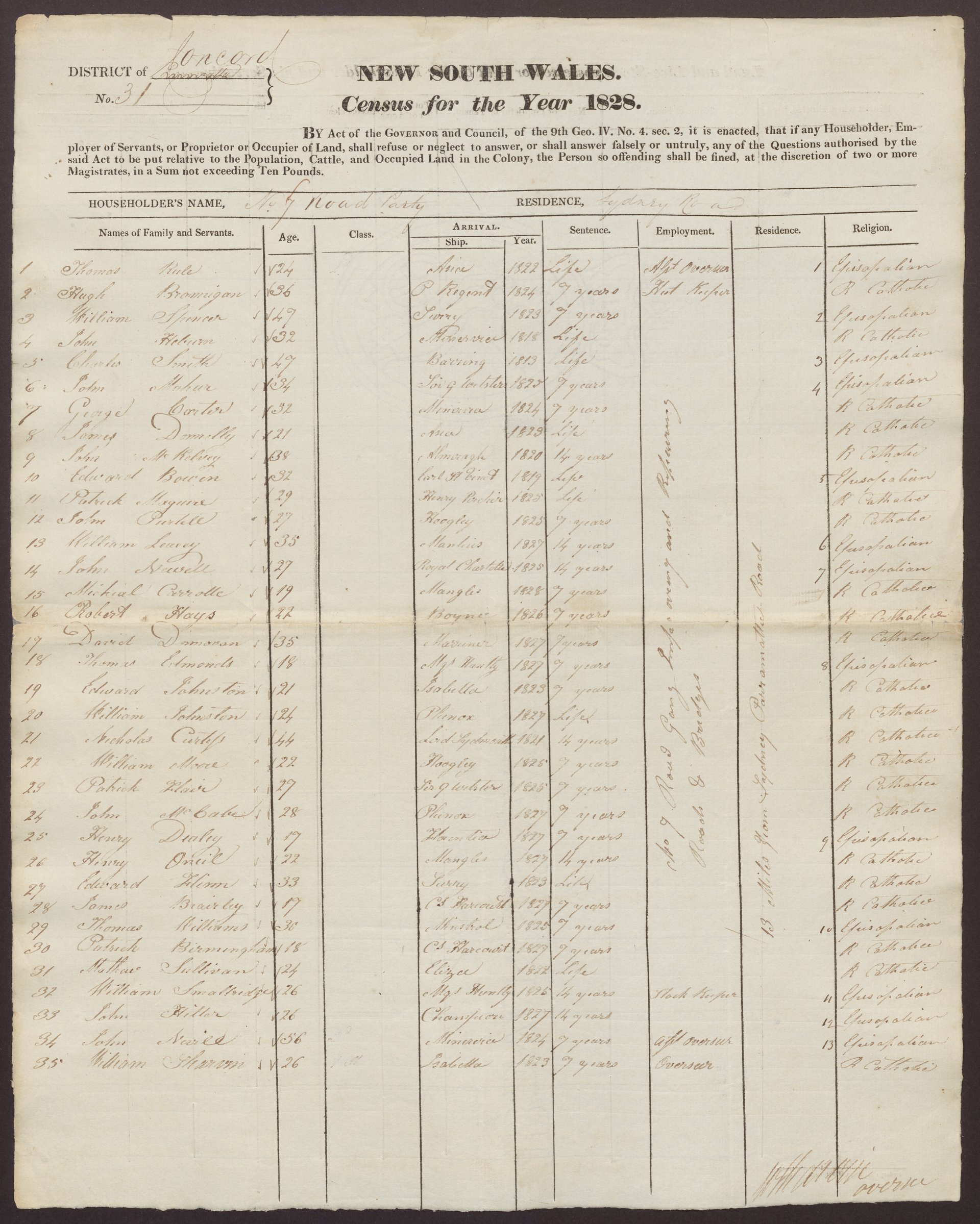- Convicts and Employers (NSW) Index, 1828, 1832–37, Jan 1838–Jan 1844 compiled by Pastkeys