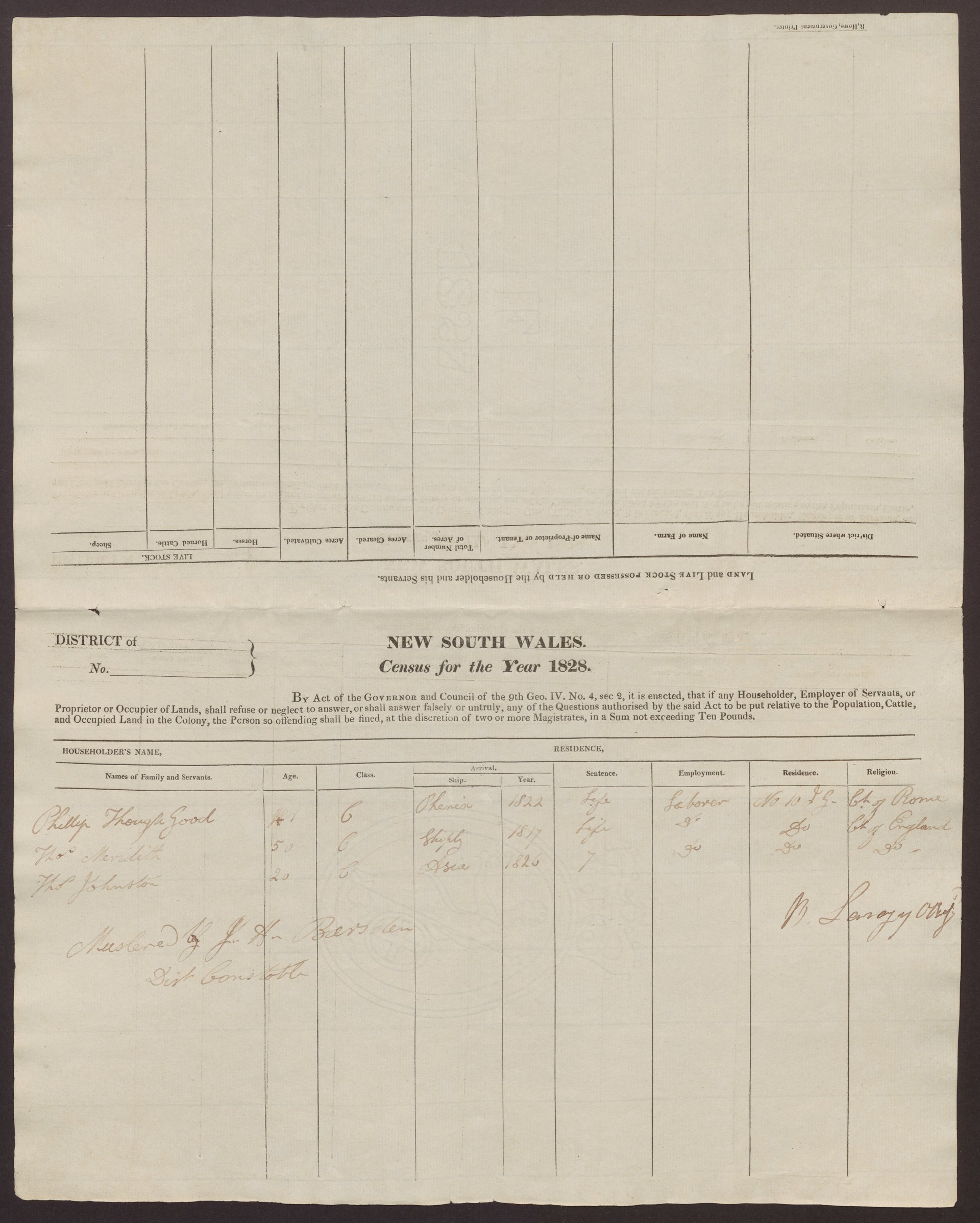 1828 Census: Householders' returns District of Melville #10 Iron Gang - Barnard Larogy, Melville |