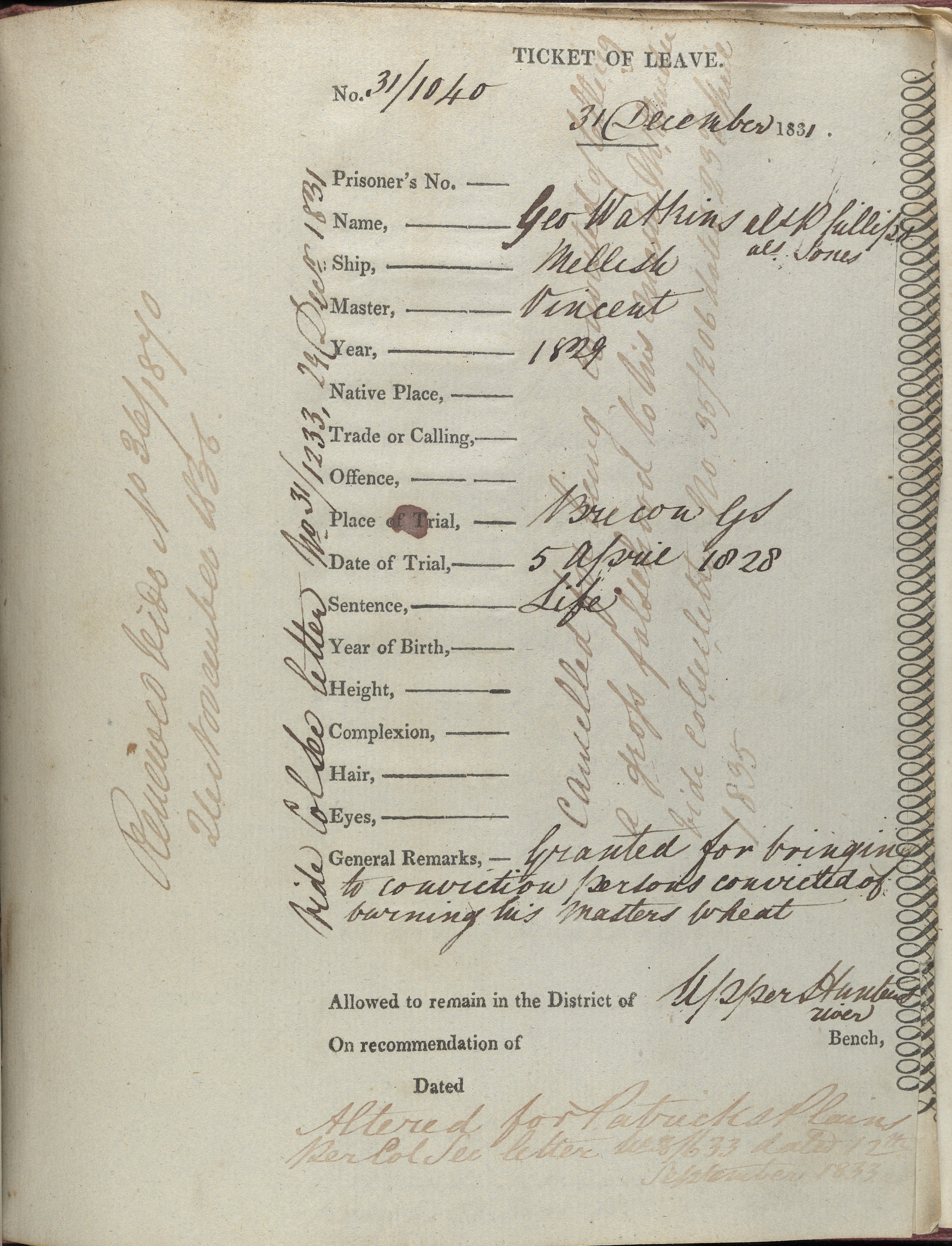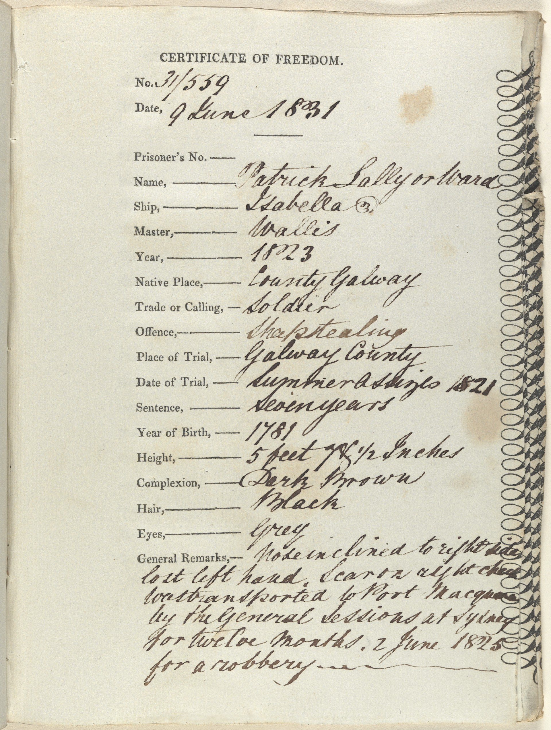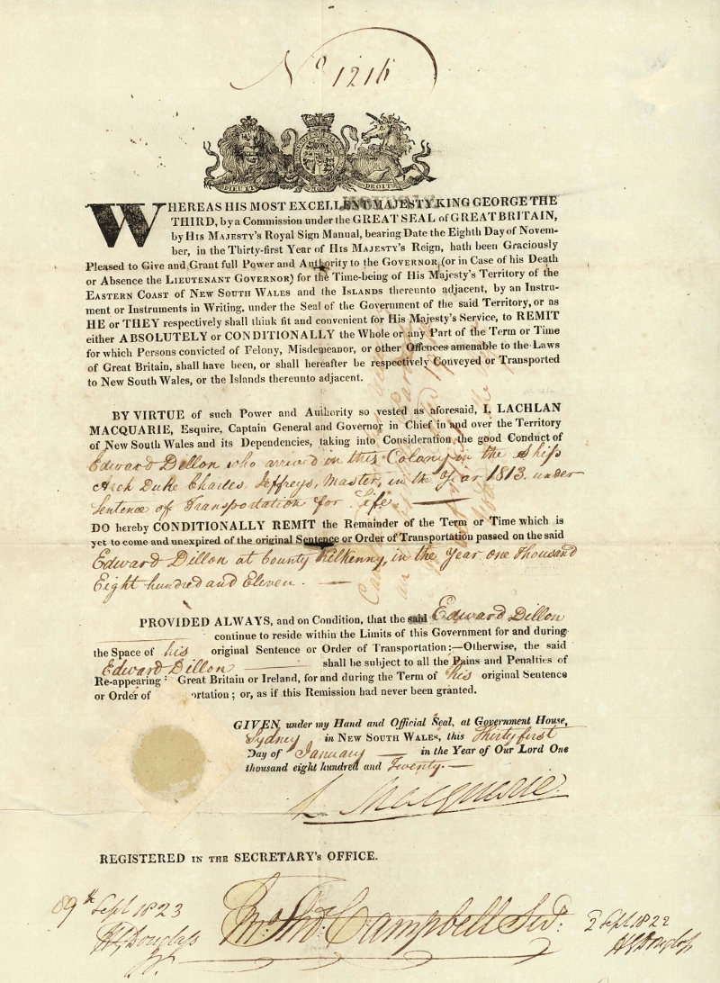 Convicts with a life sentence could receive a pardon but not a Certificate of Freedom. The two main types of pardons were: