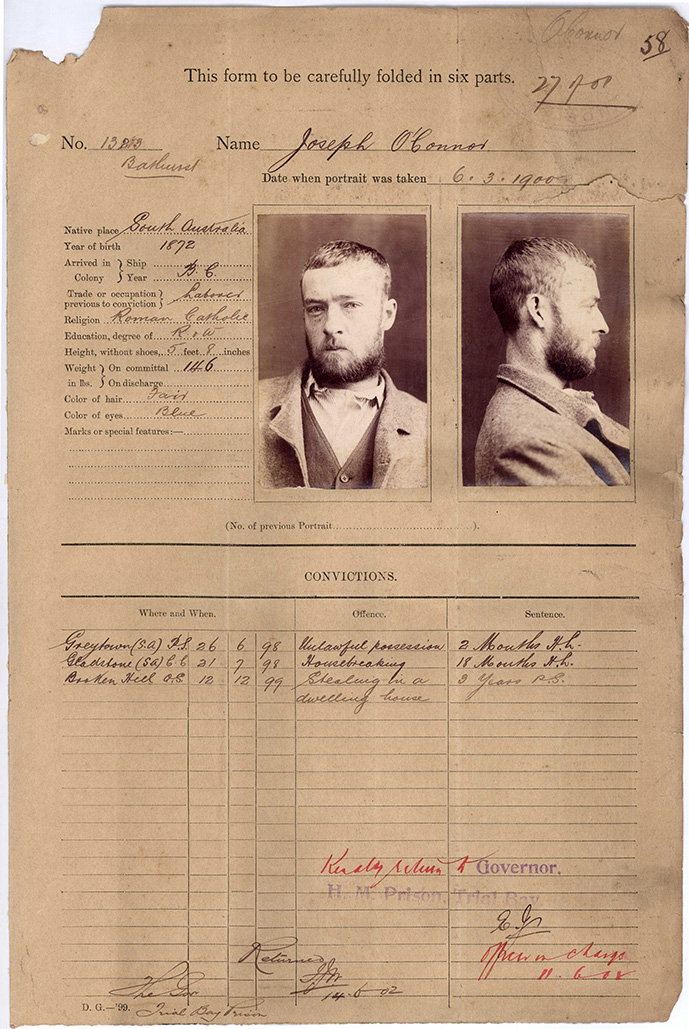 These photos of prisoners were accompanied by the following details: name, aliases, date when portrait was taken, native place, year of birth, arrived in colony - ship and year, trade or occupation, religion, degree of education, height, weight (on committal, on discharge), colour of hair, colour of eyes, marks or special features, where and when tried, offence, sentence, remarks, previous convictions - where and when, offence, sentence.