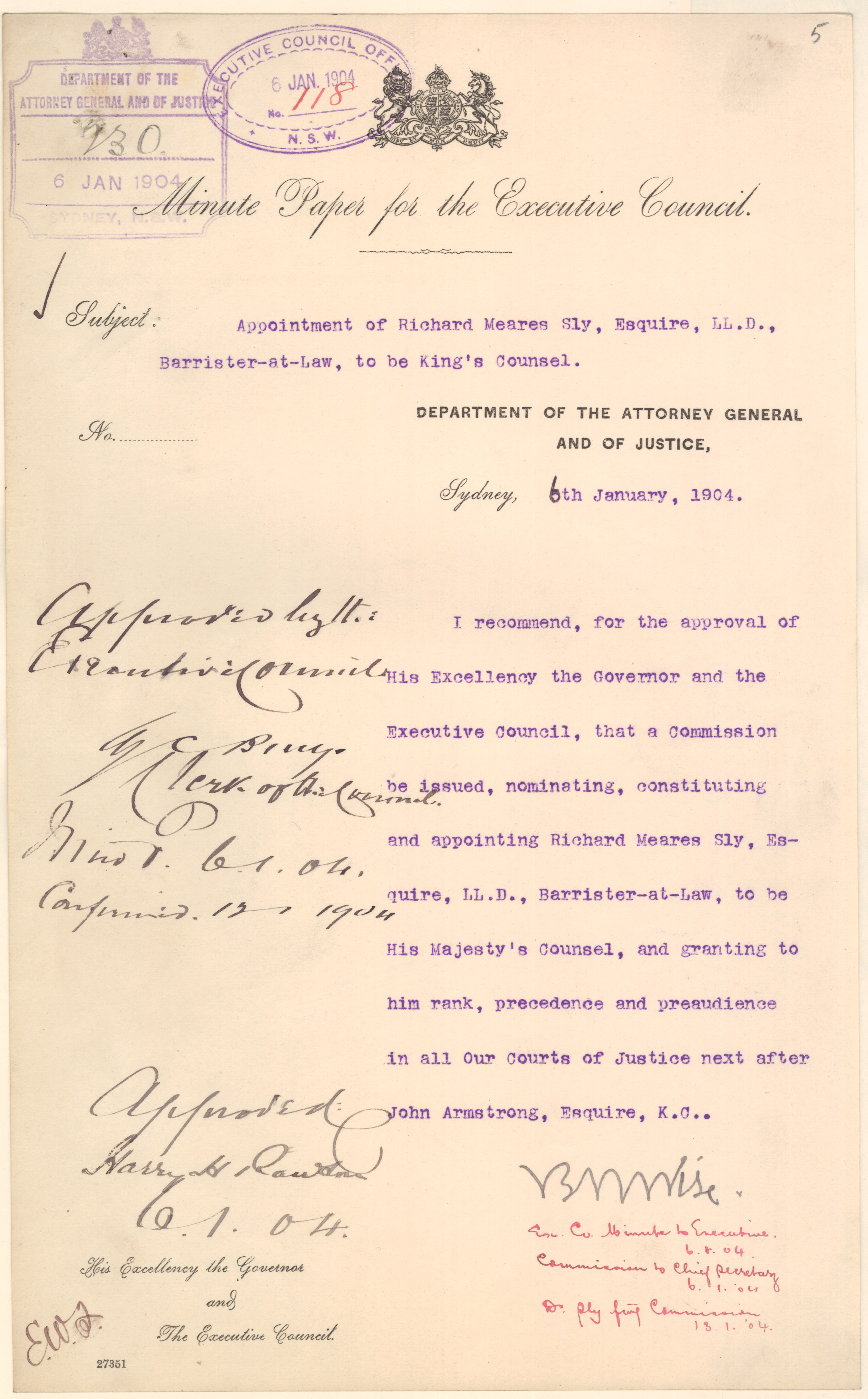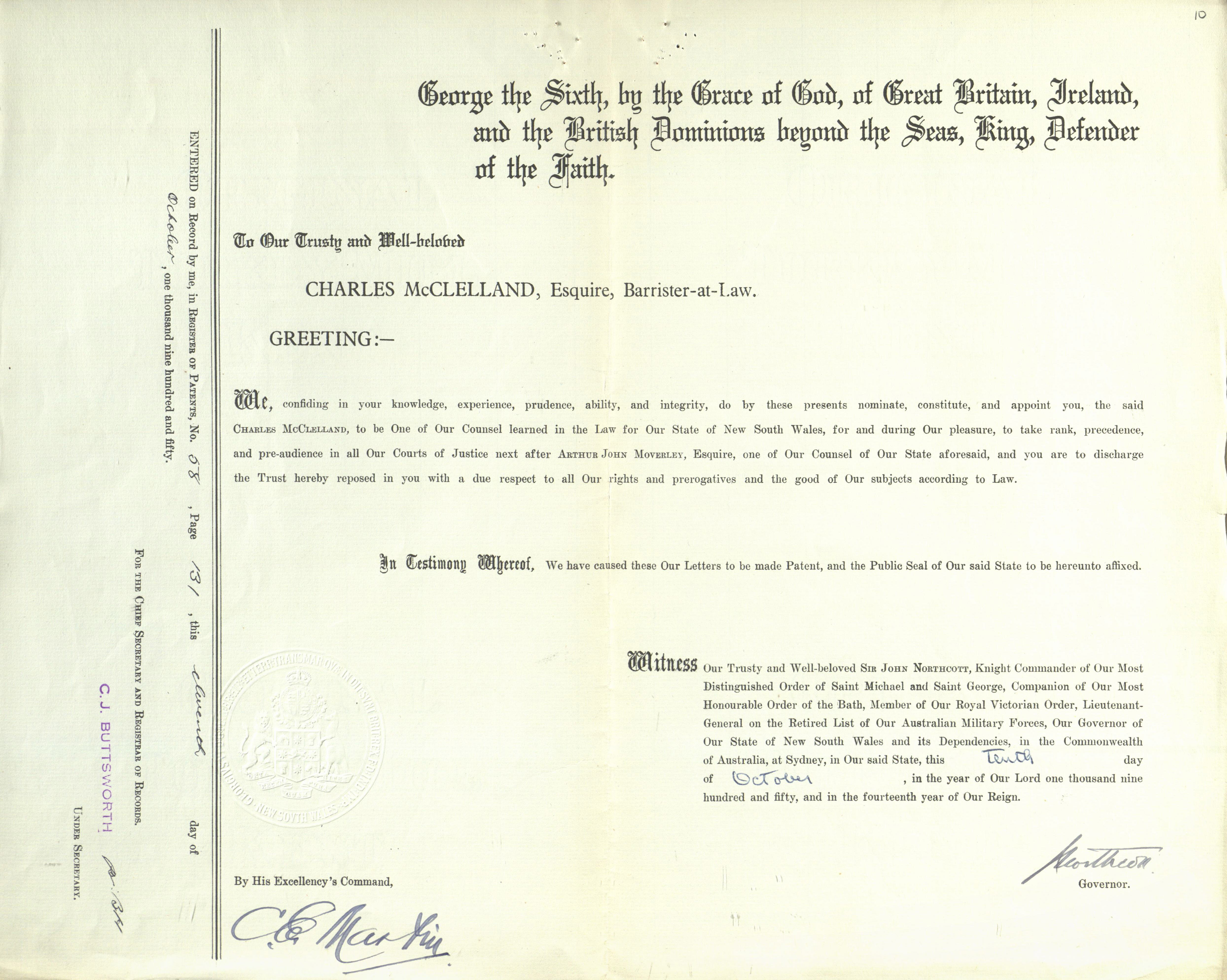 - Record series in the index: NRS 302/333 Attorney General/Attorney General & Justice Special Bundles - Correspondence re appointment of King’s/Queen’s Counsels [10/42917-42918]