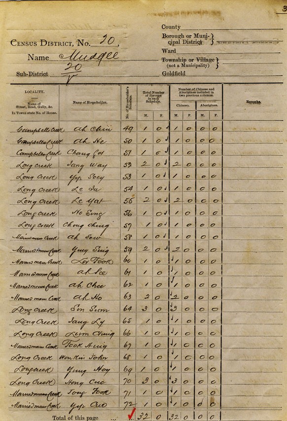 References to Chinese miners can be located in the records of the Gold Commissioners and in the records of Mining Wardens’ Courts in the Department of Mines. Further references to Chinese on the minefields, including documents relating to the Lambing Flat ‘riots’ in 1860-1861, may be found in the records of the Colonial Secretary and Department of Lands. See the catalogue for records of the relevant public offices.