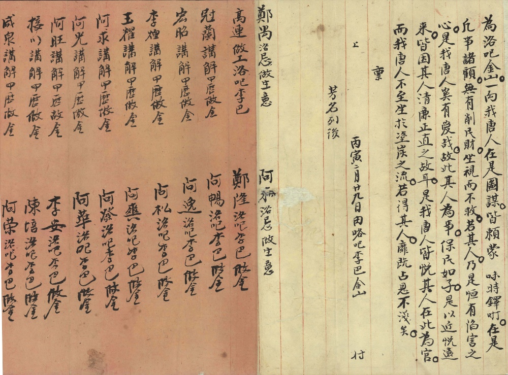 NRS 7933, Letters received [Department of Lands]. Petition from the Chinese miners at the Rocky River Goldfield, 1866 [Enclosure to Letter No.66/2953 in 5/3703B] (Chinese scroll and English translation)