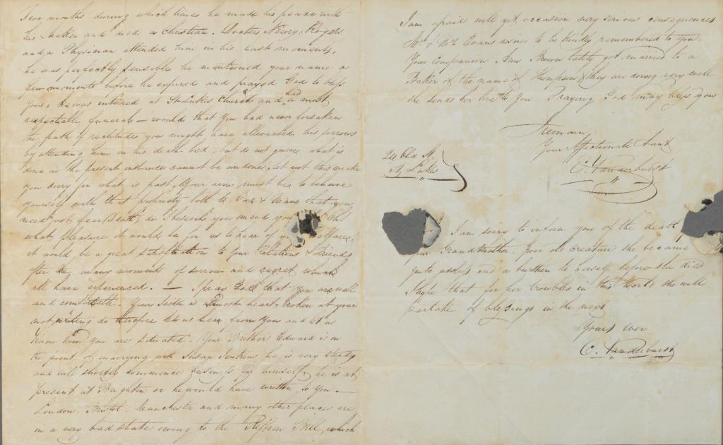 The State, however, dismissed the Badham/Rogers application. Elizabeth had listed herself as ‘married’ when arriving in the Colony, now she was claiming to be widowed. A letter from Elizabeth’s aunt, Mrs Vanderburg notifying the young woman that her London-based husband was ‘no longer’—thus confirming her status as a widow—was rejected as a falsehood by authorities. This was unsurprising given that aunt Vanderburg’s letter from ‘London’ had, in fact, been postmarked in Sydney. Undeterred, the couple soon reapplied, and were married six months later at St Luke’s, Liverpool.