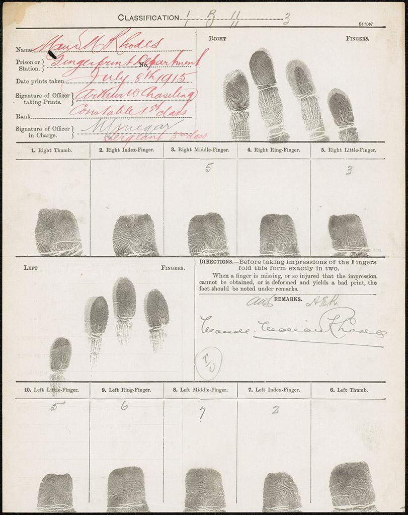 The 1915 employment register shows that Rhodes was the department’s first registered police woman, being number 64 and Armfield number 65. However, it was Armfield who had the longer career. She also had a role in Rhodes’ discharge in 1919: on 25 November Rhodes refused to obey a ‘legitimate order’ to go to Central railway station, given to her by ‘her superior officer – Special Constable LM Armfield’. Rhodes was given 14 days notice and discharged.
