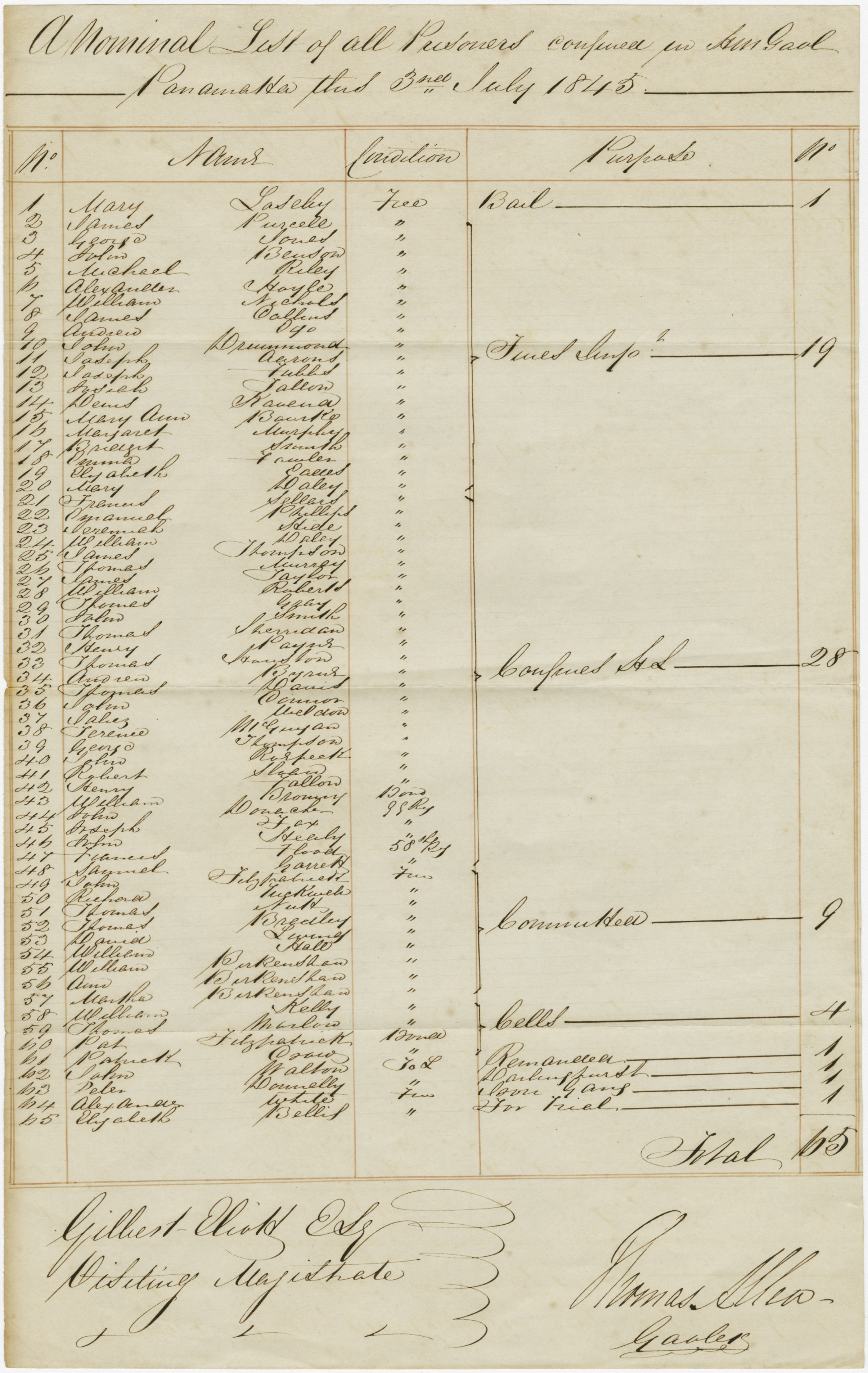 The document is signed by Visiting Magistrate, Gilbert Elliot, and Parramatta Gaol Gaoler, Thomas Allen. It is not clear who this document was originally addressed to.