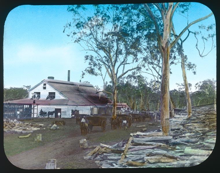 Many of the slides - NRS 14086 - are of typical country scenes such as saw mills, dairy farms, mining, and timber felling and hauling. A number of slides depict typical NSW suburban homes of the period. There are also slides of the main buildings in which the Exhibition was held, and some of the NSW exhibits. Some of the images may have been added to the collection later for tourism and promotional purposes.