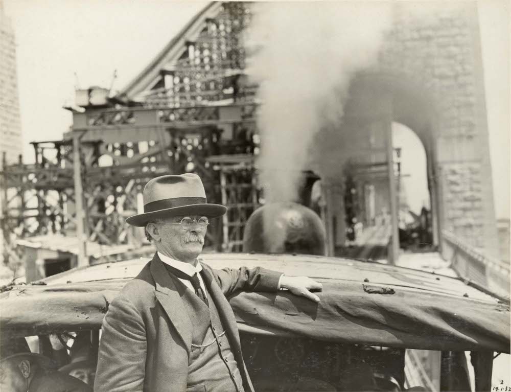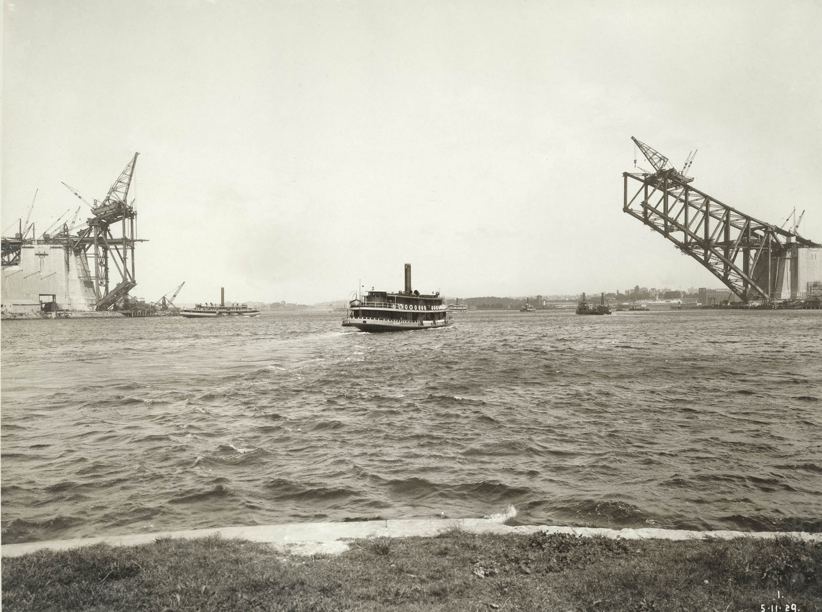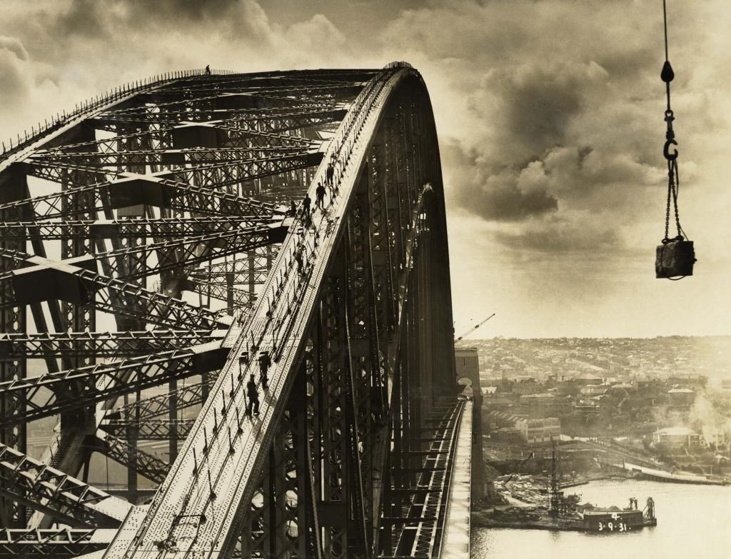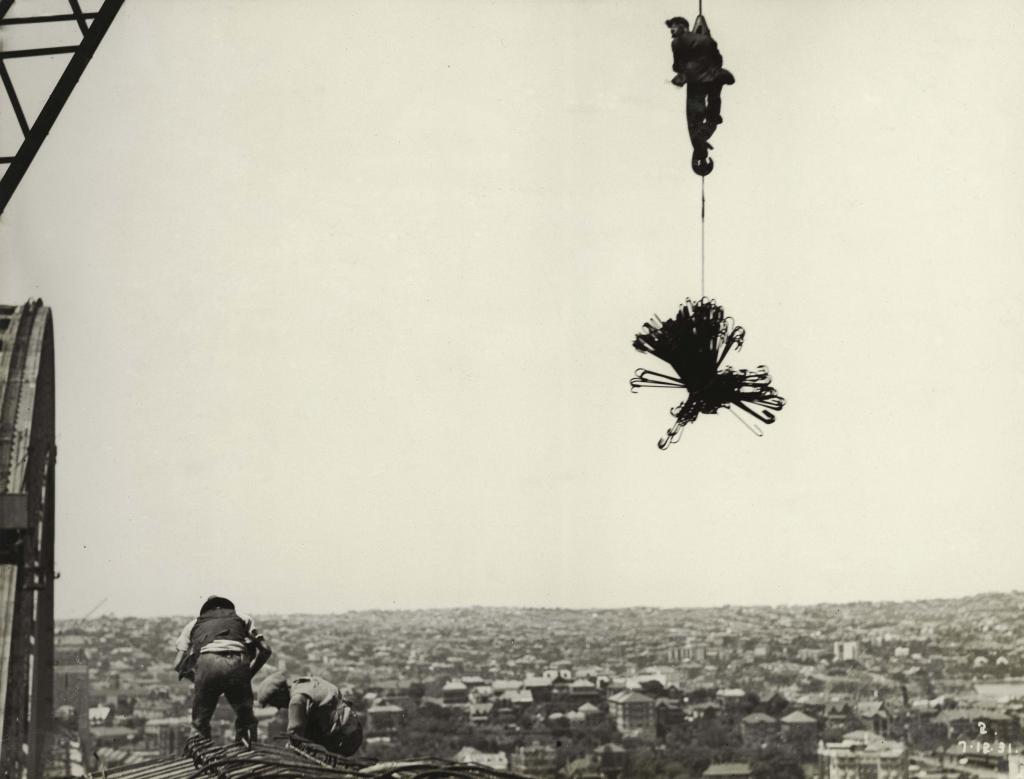 This series NRS 12685 contains 14 albums of c.2000 photographs documenting the construction of the Sydney Harbour Bridge from the turning of the first sod to the final steps of construction, the official opening and the early use of the bridge by the public.