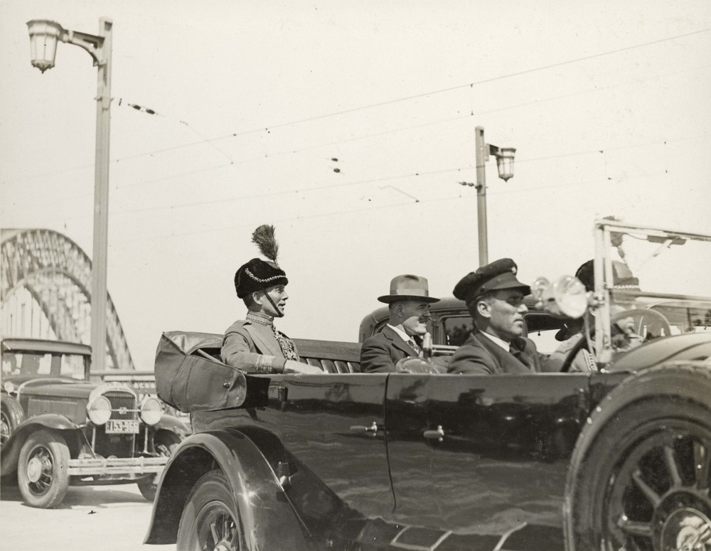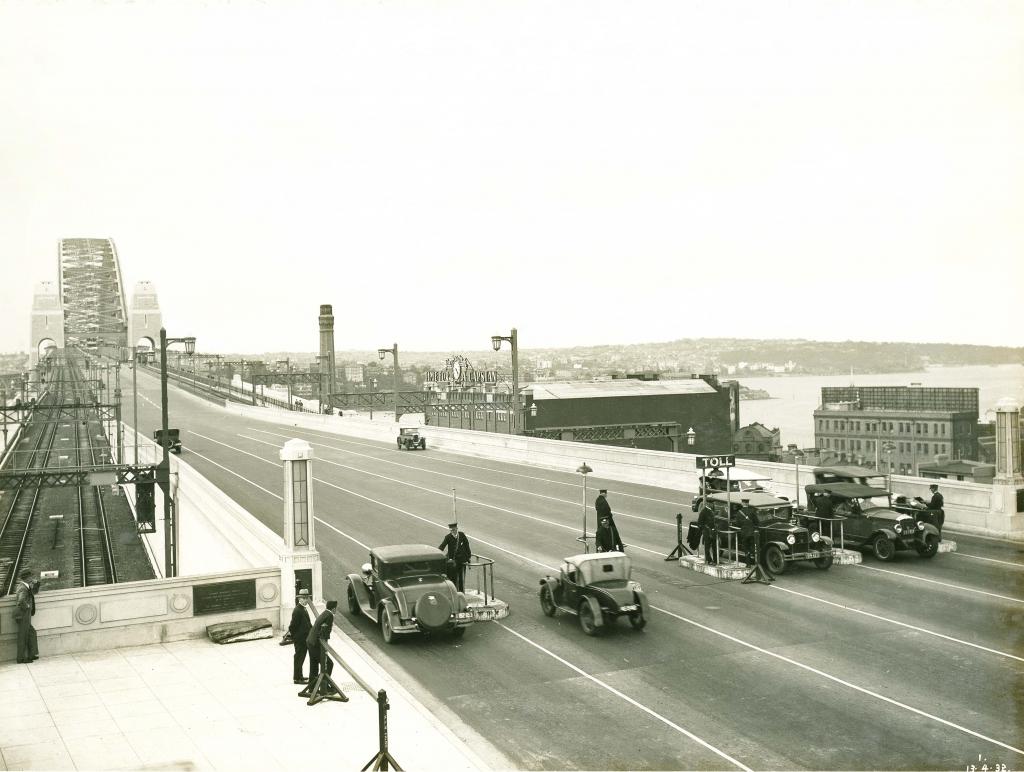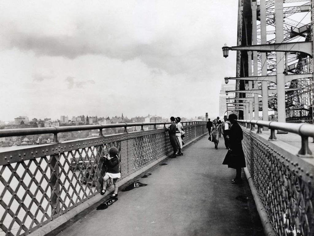 There are many photographs of school children crossing the bridge days before its opening, and of the first trams, trains and private vehicles to use the bridge. The official opening celebrations and ceremony included water and aerial pageants, a procession, delivery of the good will message, search light and fireworks display. The spectators are shown as is the public crossing the bridge which followed the ceremony.