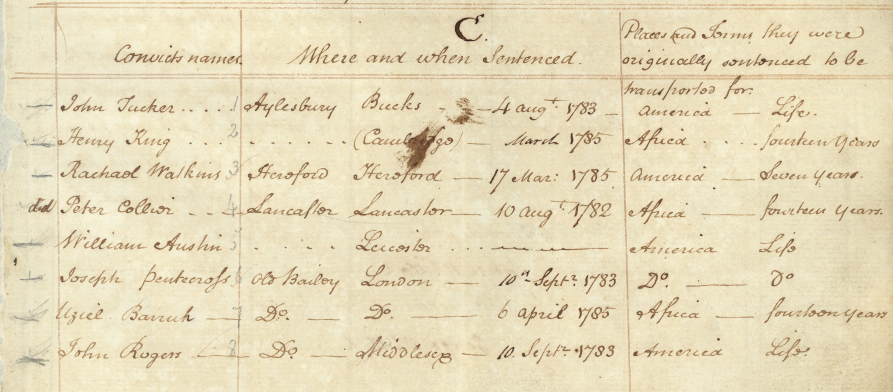 With his correct name to hand a search of Joseph Pentecross in the early convict index shows him on the convict indent for the Neptune. He was tried at the Old Bailey in September 1783 and sentenced to transportation for Life, to America. America was a destination for transportation before New South Wales. How did he end up in New South Wales? Back to The Second Fleet, Britain’s Grim Convict Armada of 1790 which confirms Pentecross was en route to America when the convicts mutined and he escaped. He was recaptured, retried and ended up with a sentence of transportation for life to New South Wales.