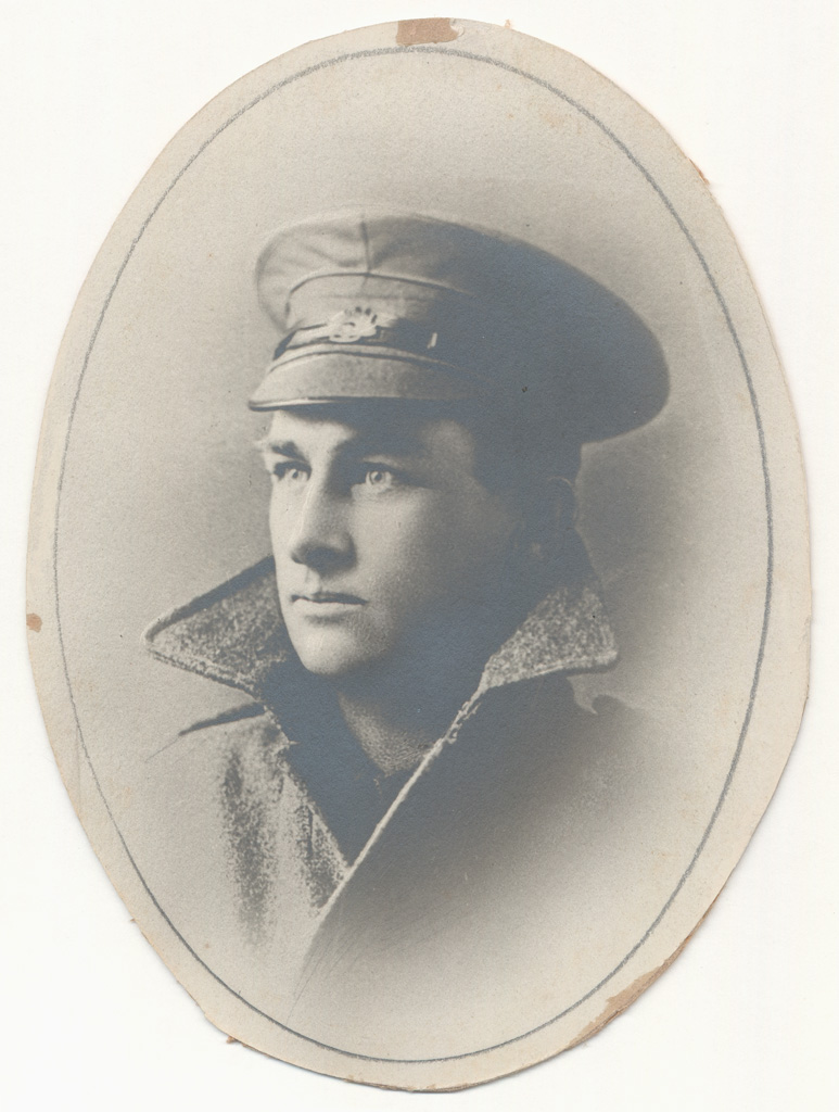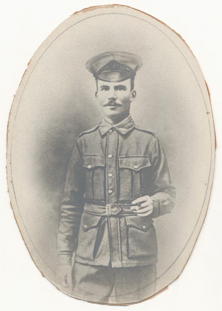 NRS-20231: These oval shaped portraits are printed on thick card and have been cut out of an album or display board. The name of the person has been written in pencil on the back of the prints. Most portraits have also been numbered in pencil on the back. All except one portrait show the sitter in a military uniform.