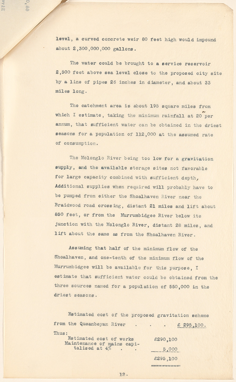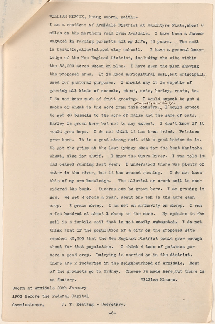 The Correspondence and Minutes of Evidence and proceedings of the Royal Commission on Sites for the Seat of Government of the Commonwealth 1899-1902, NRS 1460, 1461, [2/882-885.5].