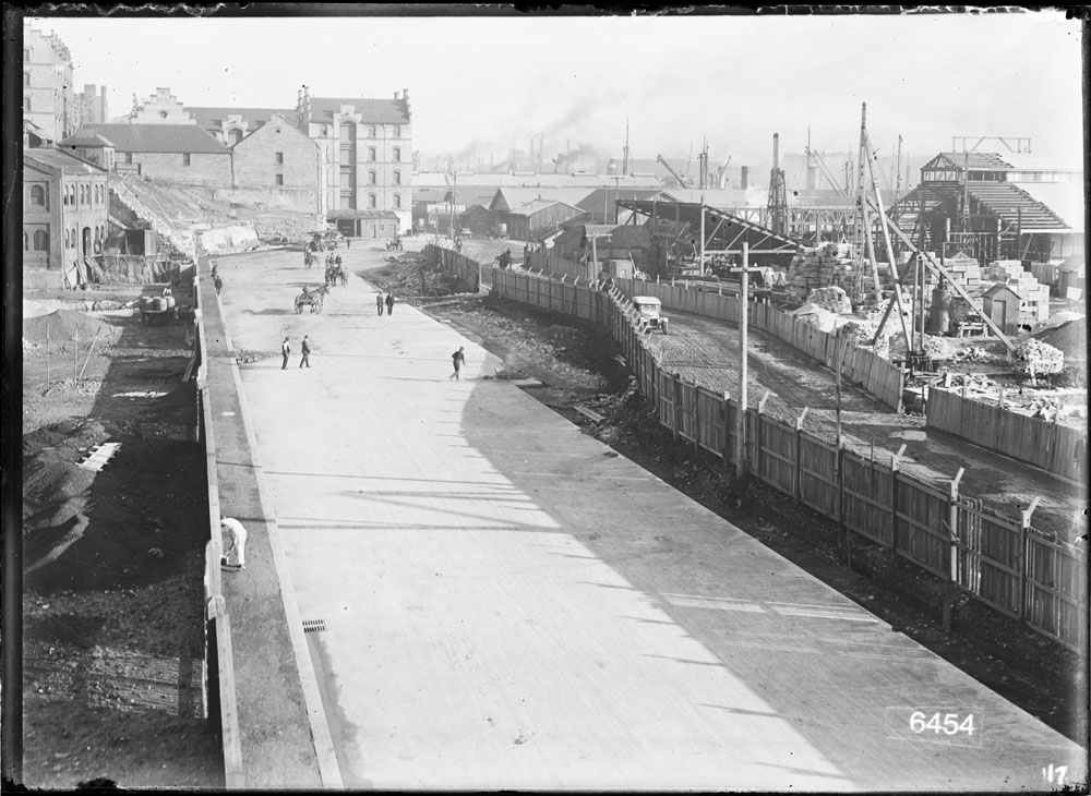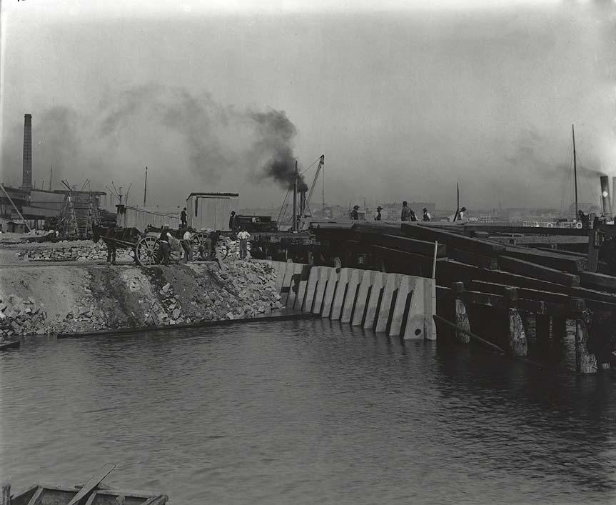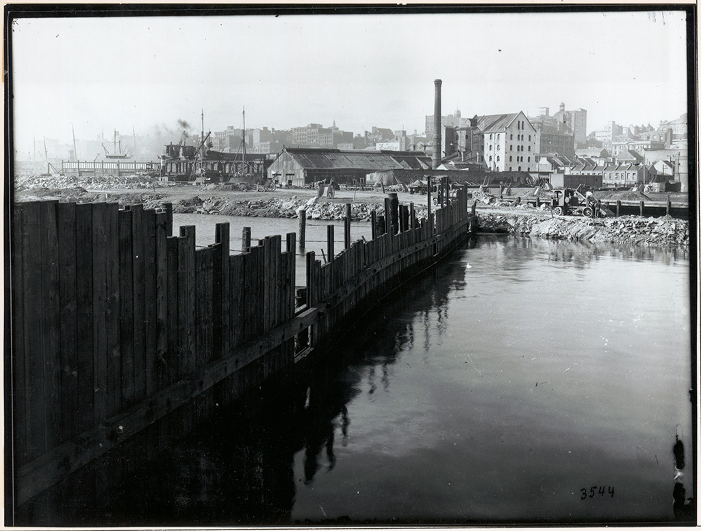 1926 Debris from construction of the underground railway in Sydney used to reclaim head of Darling Harbour