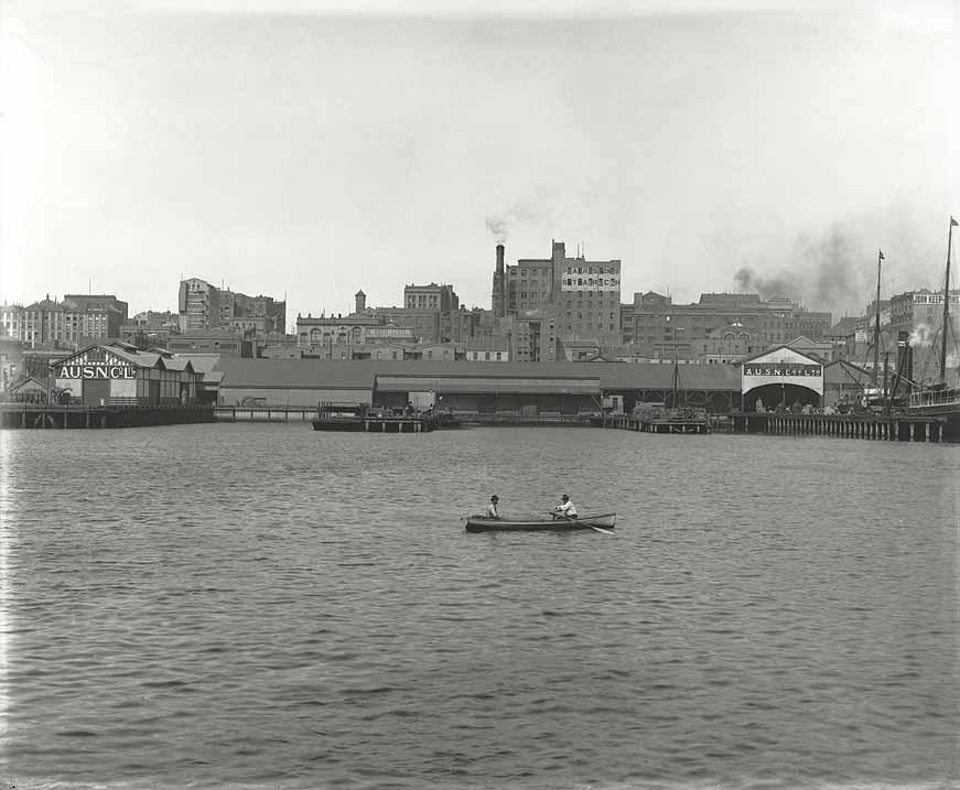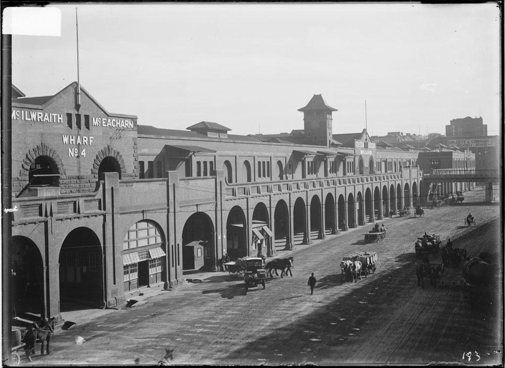 For many years Darling Harbour was the working port for Sydney. The area was home to a myriad of finger wharves, shipyards, factories and warehouses and the thousands of people who worked there lived in nearby The Rocks and Millers Point, often in crowded and insanitary slums. Eventually the warehouses and railways yards gave way to a modern retail and entertainment precinct, a Darling Harbour that would be unrecognisable to the Sydneysiders of 100 years ago.