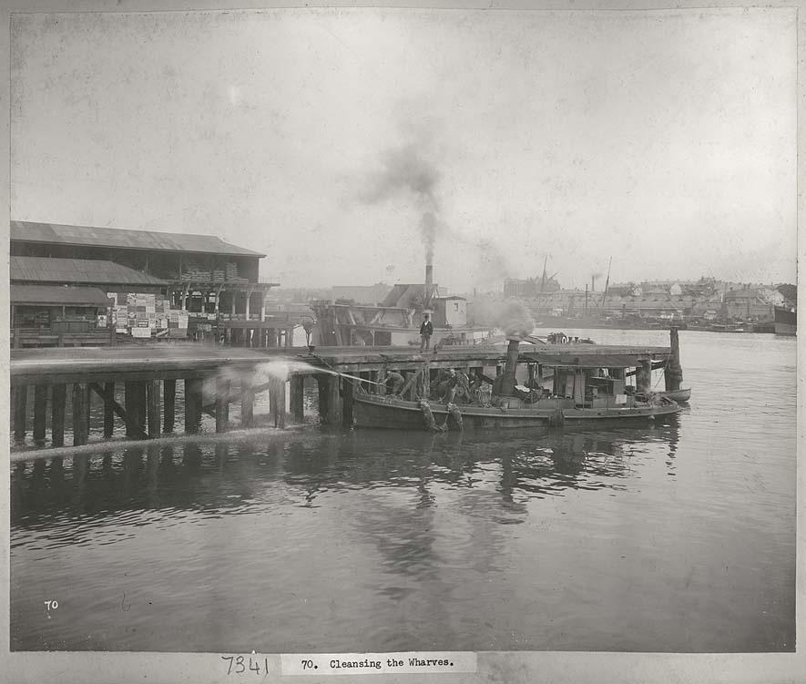 Arthur Paine, a carter who worked in the wharf area, was the first person diagnosed with the plague on 19 January 1900.[8] By March, with the number of confirmed plague cases increasing, the NSW Government and the Sydney Council began a quarantine and cleansing operation in The Rocks, Millers Point and down to Darling Harbour (as well as certain areas in Woolloomooloo, Paddington, Redfern and Manly). From 24 March to 17 July 1900, local residents were employed to cleanse, disinfect and fumigate the quarantined zone while rat catchers caught over 44,000 rats.