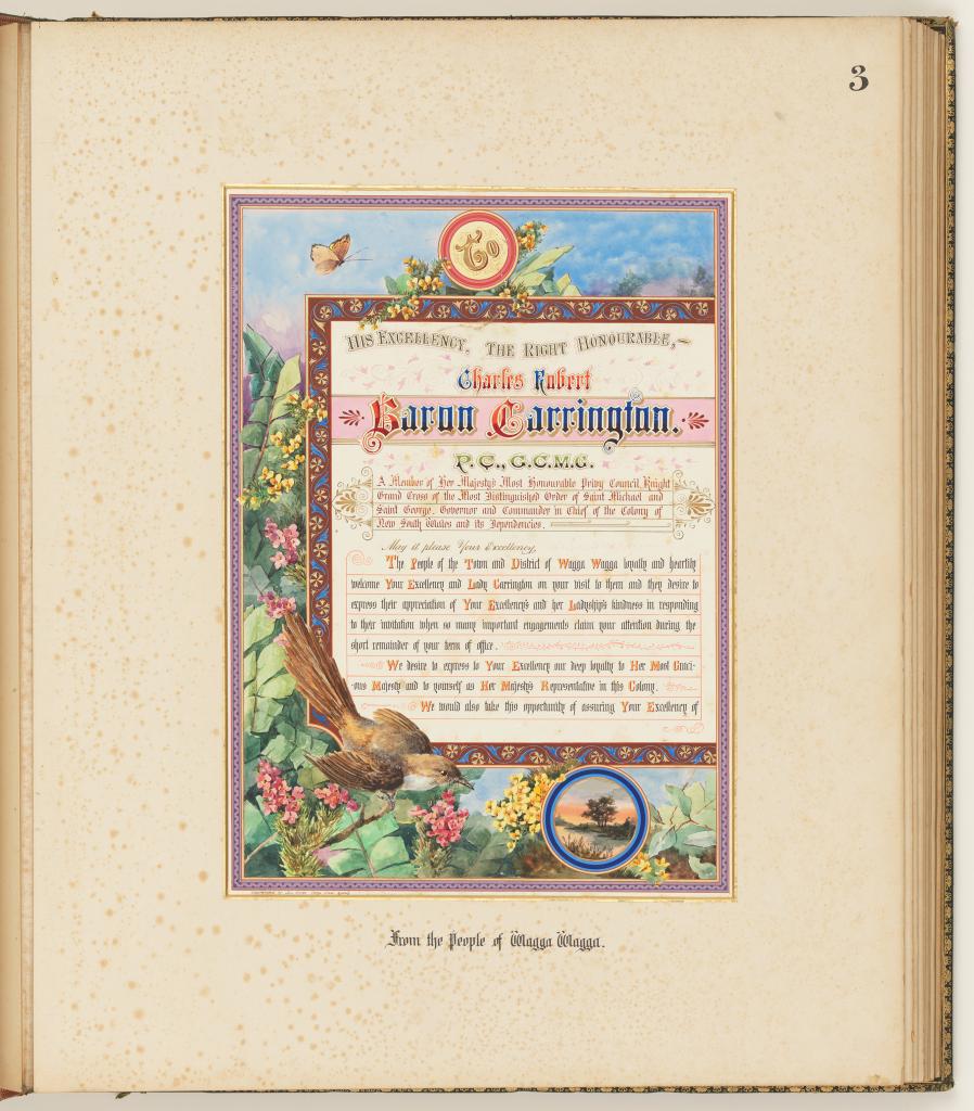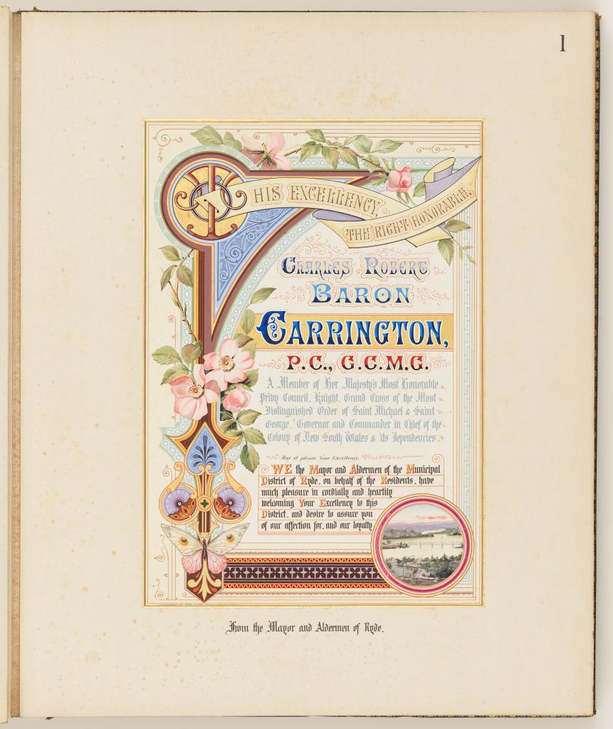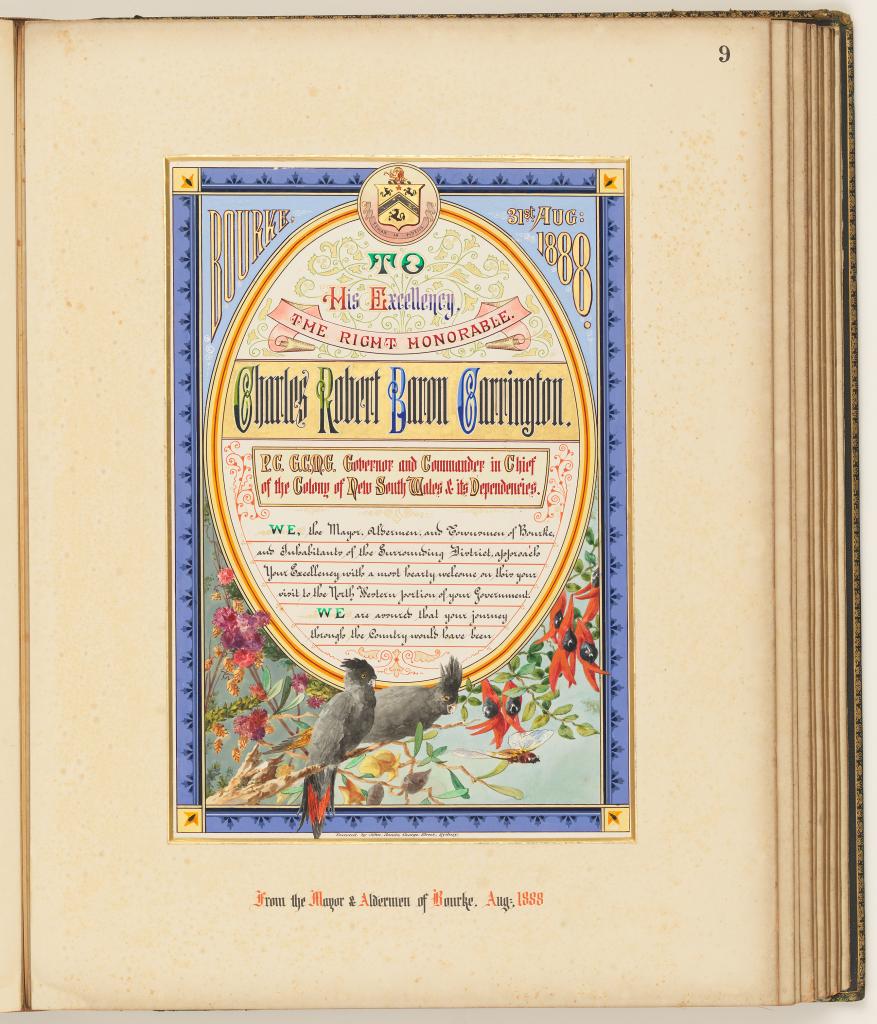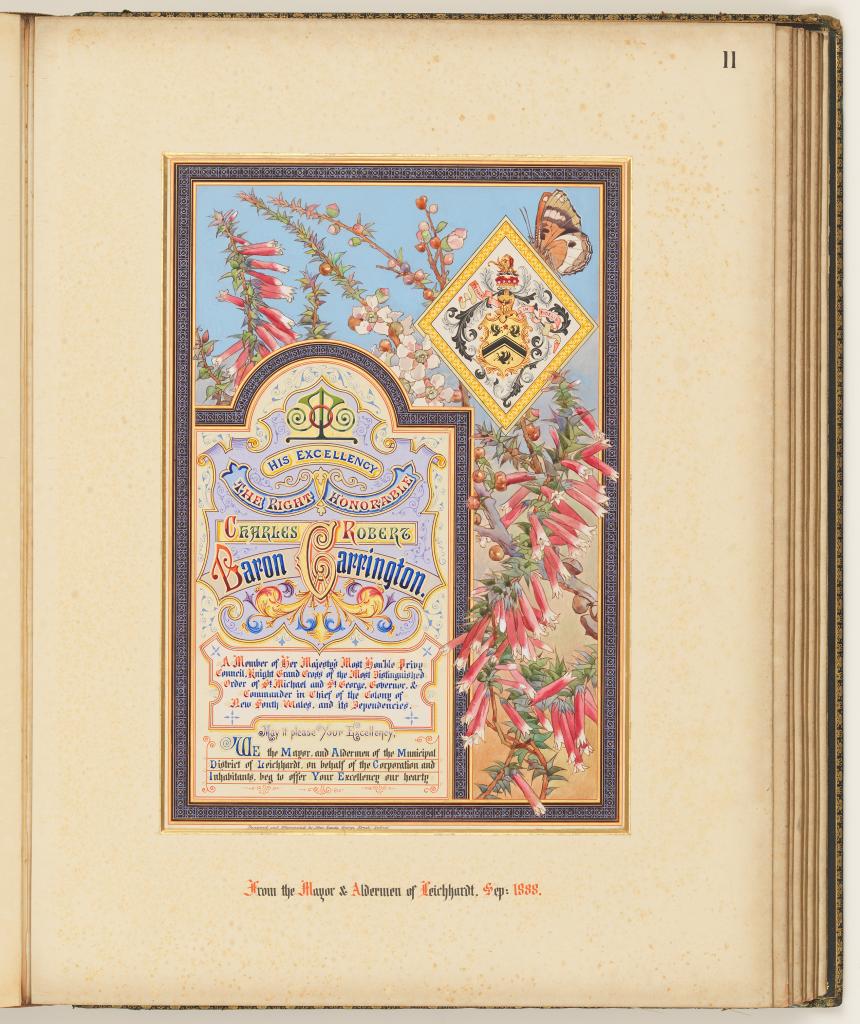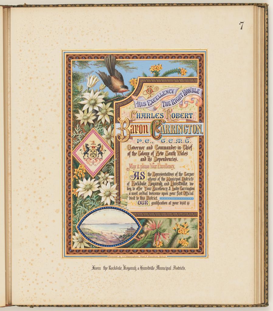 This ‘most auspicious’ appointment attracted much ceremony in NSW and as a consequence saw the creation of highly decorative illuminated addresses and photograph albums to be officially presented to the Governor.