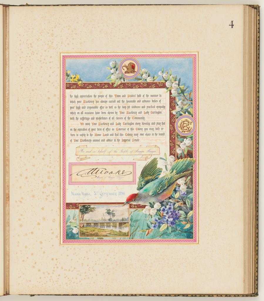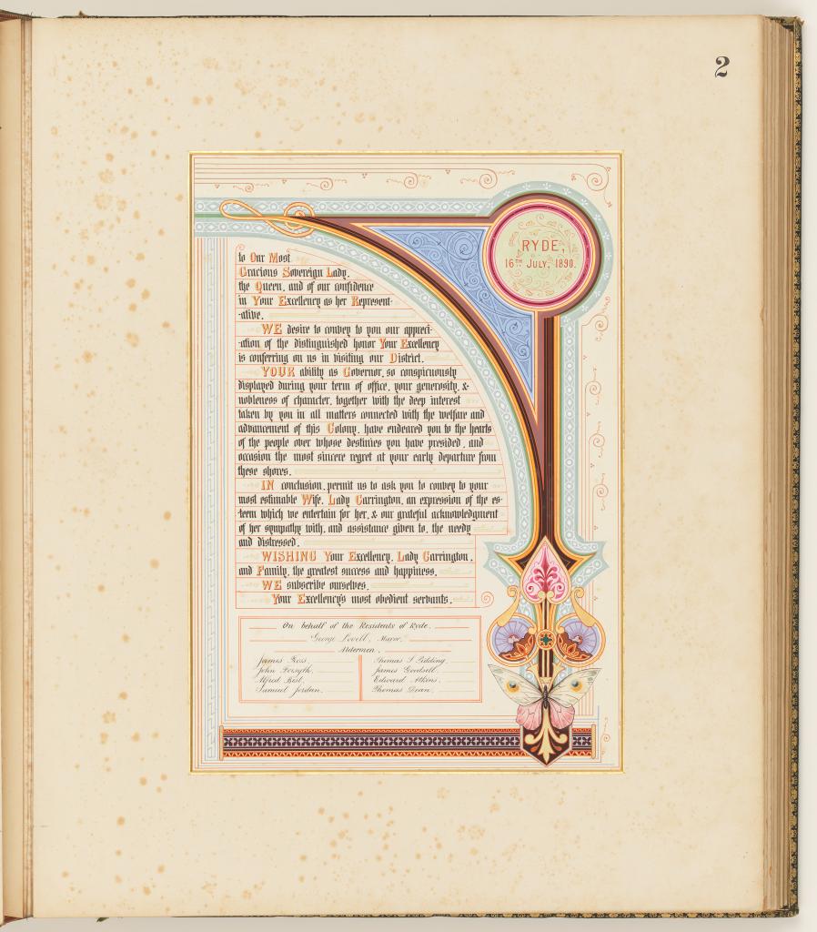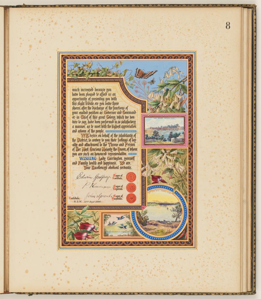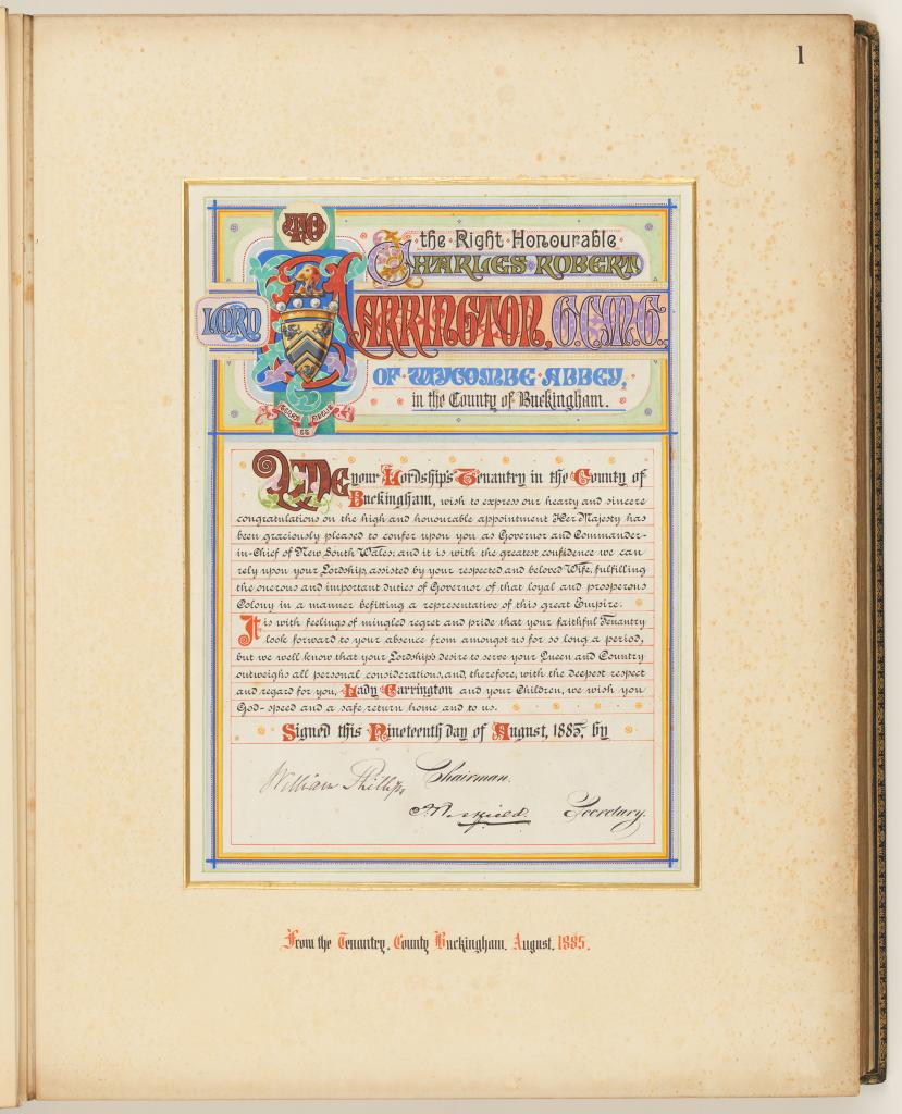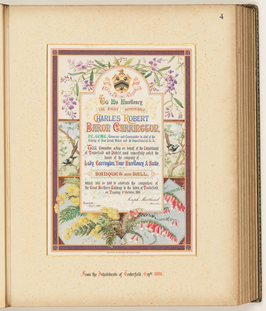 This ‘most auspicious’ appointment attracted much ceremony in NSW and as a consequence saw the creation of highly decorative illuminated addresses and photograph albums to be officially presented to the Governor.
