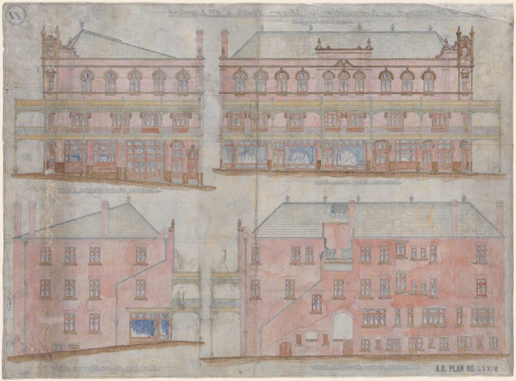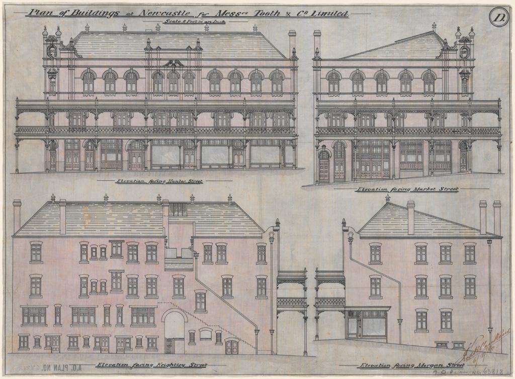 Plan of proposed Hotel at Newcastle corner of Hunter and Market Streets, Elevations, 1903 (?) [Plan 63818]