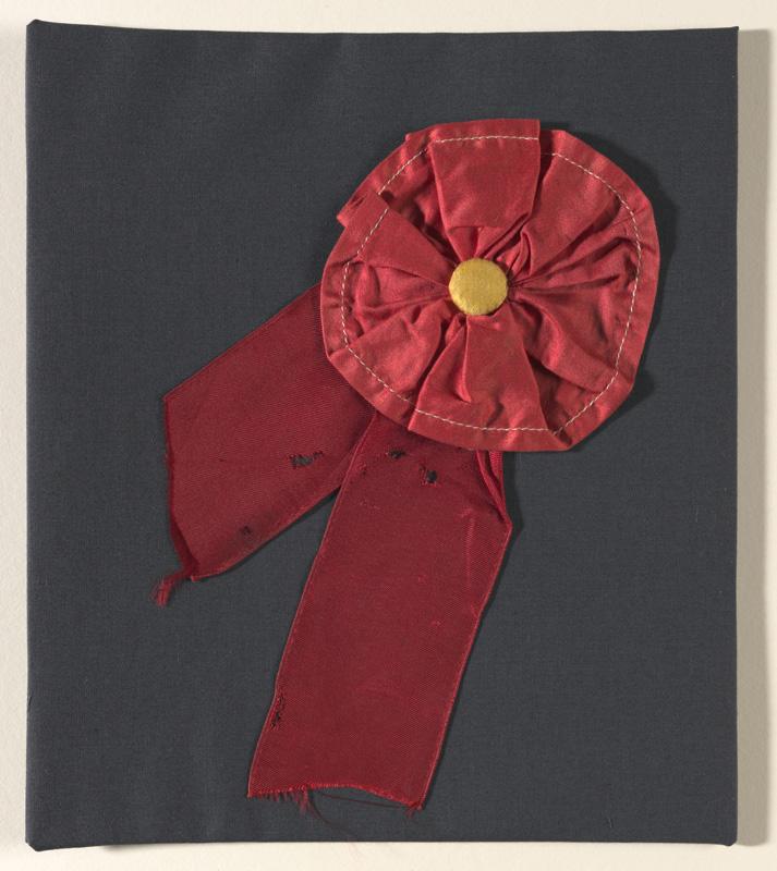 This red ribbon rosette was worn by train driver, Albert Arnold, who drove the first train over the Harbour Bridge after opening, 19 March 1932 - R479, [Item14]
