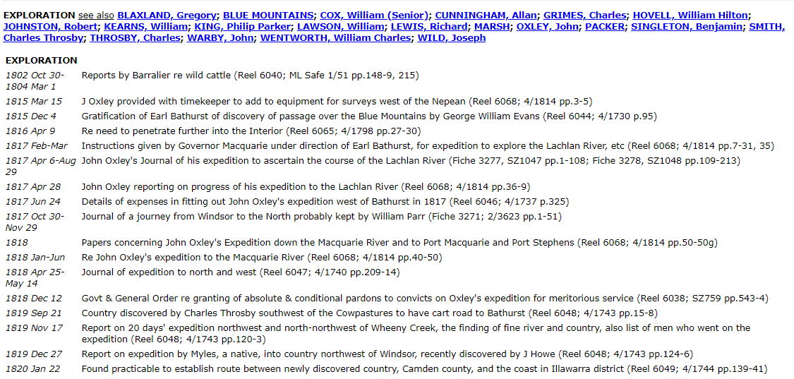 Digitised entries in the Colonial Secretary's Papers under Exploration