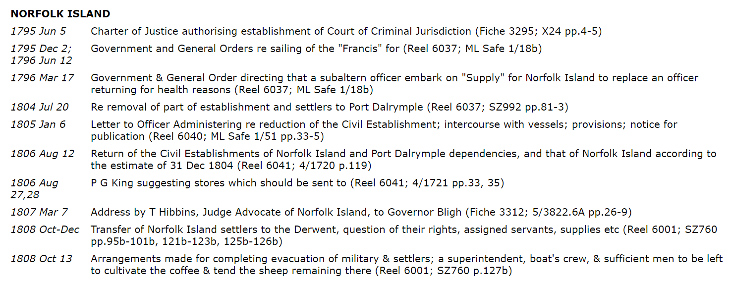 See the entry in the Colonial Secretary's Papers for Norfolk Island »