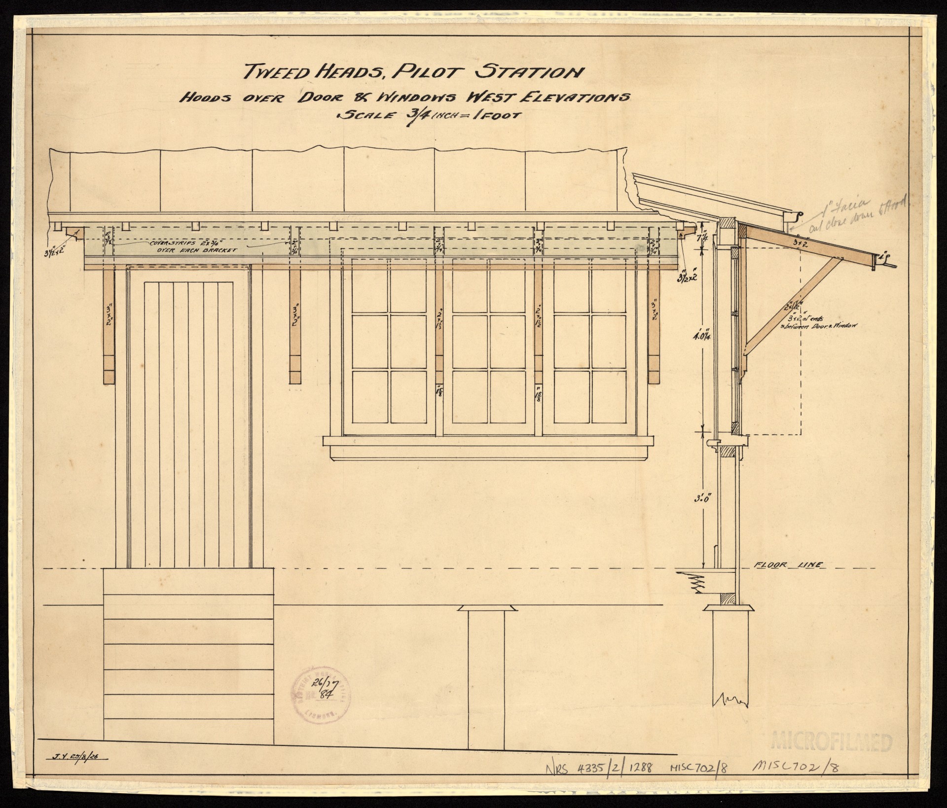 Tweed Heads had a long history as part of a river system used for commerce and pleasure. The Tweed Heads Pilot Station operated from 1870. These six plans from 1917 to 1927 show the size and range of buildings from the cottages for the boatmen to housing for the station’s rockets.