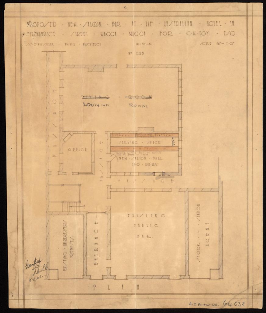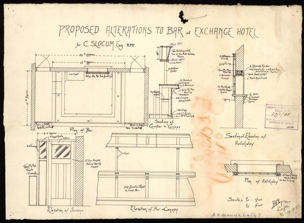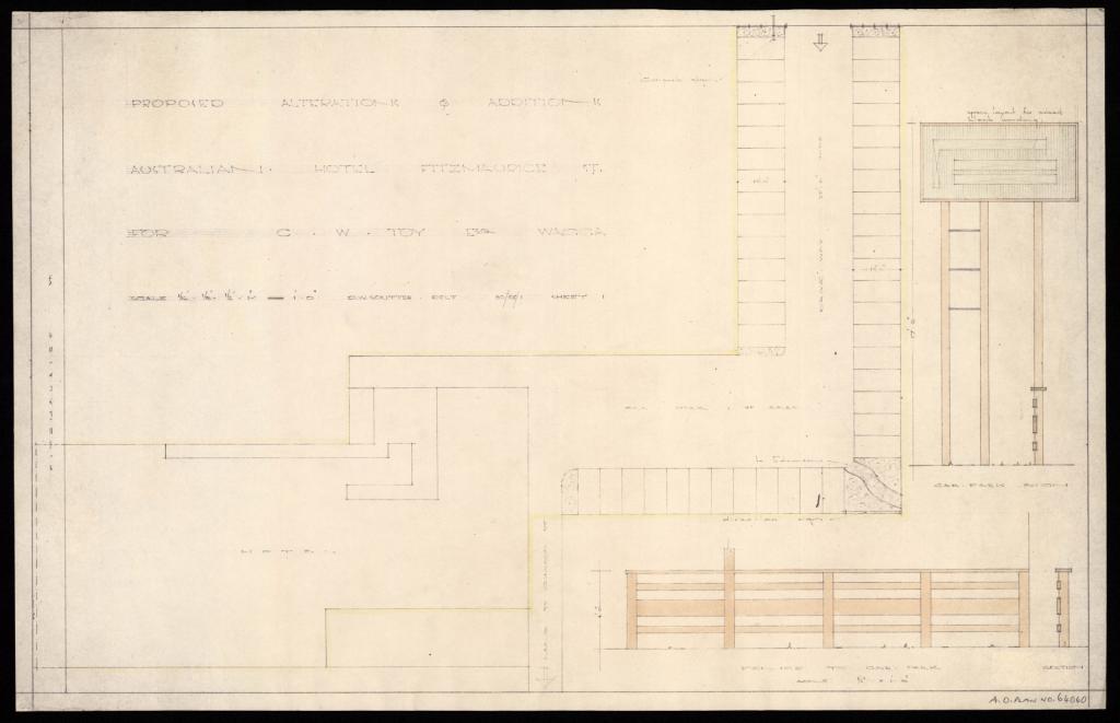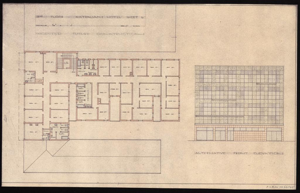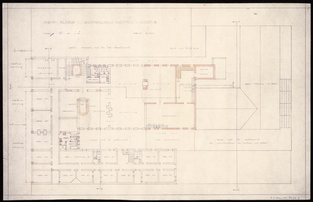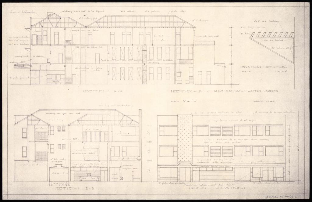 These plans of five hotels – Australian, Black Swan, Carrington, Exchange and Pastoral – are from the 1920s to the 1940s. They range from small single storey hotels to multi-storey hotels with entire floors of accommodation. All plans are for alterations.