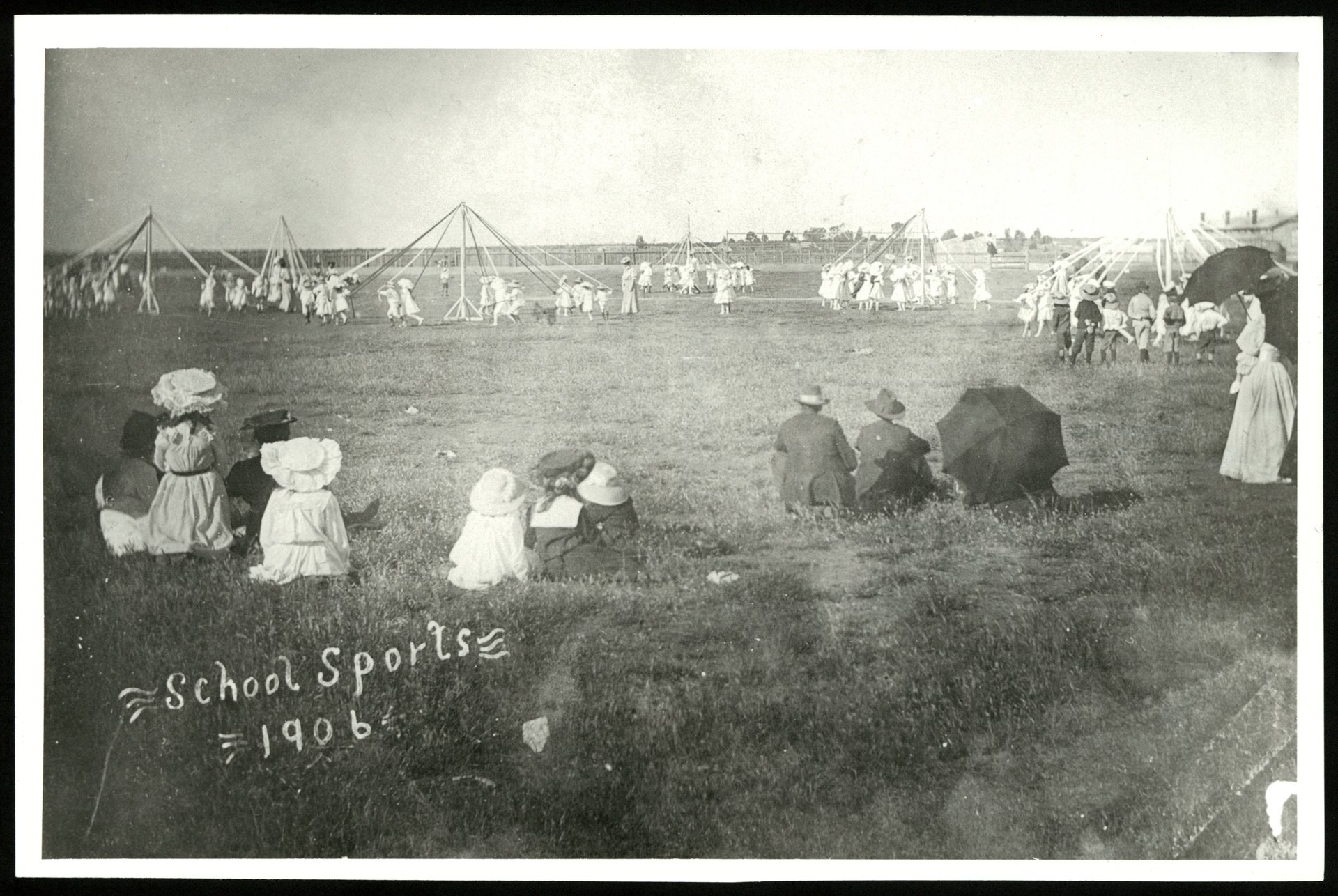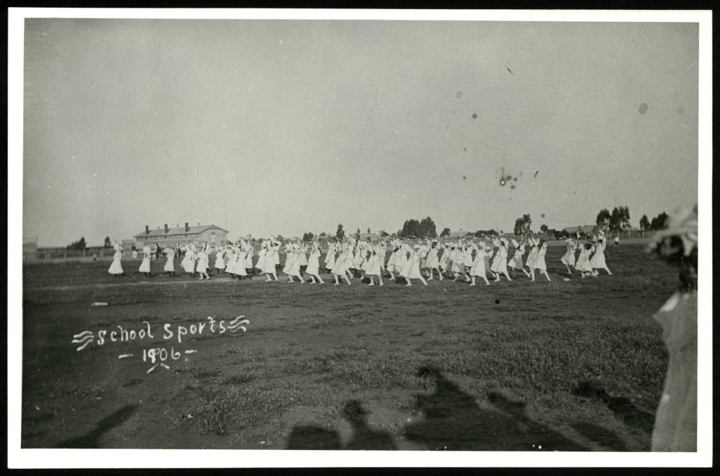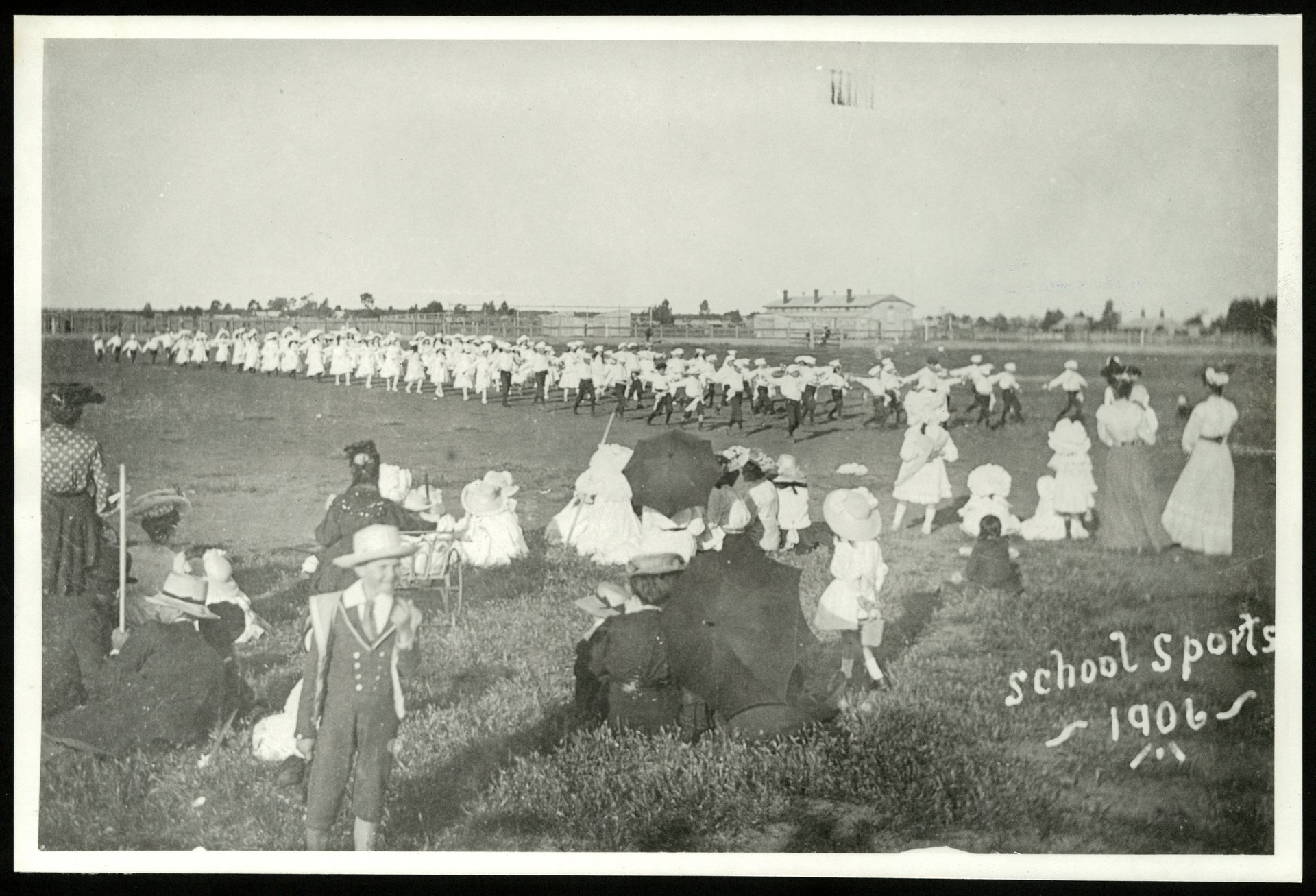 The photographs of West Wyalong Public School include three photographs of Sports Day 1906. This is likely to be the combined Wyalong - West Wyalong sports day approved in a letter in NRS-3829-[5/18215B]. Other images show the school in 1906 and a range of class or grade photographs