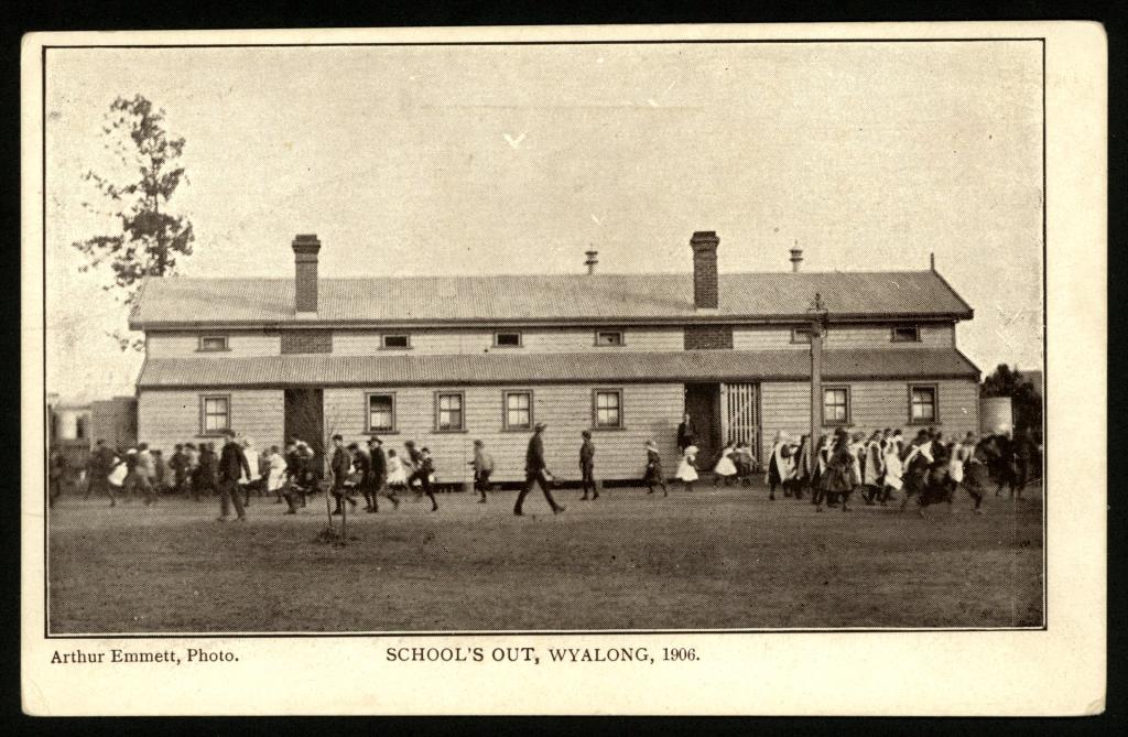 The school files show the growth of the government school system in these two towns. The schools in West Wyalong and Wyalong started in 1894 a month apart. An attempt in 1892 to establish a House to House school that included Wyalong was not successful as was the application for a Provisional school near Wyalong No. # Homestead (7 miles from Barmedman) in 1899. The two schools are close together. Wyalong Public School was a Super Primary in the first half of the 1920s. West Wyalong grew faster than Wyalong and became the larger town. West Wyalong Public School became a District School in 1926 and an Intermediate High School from 1942 before returning to a public school when the high school opened. West Wyalong High School opened in 1963.