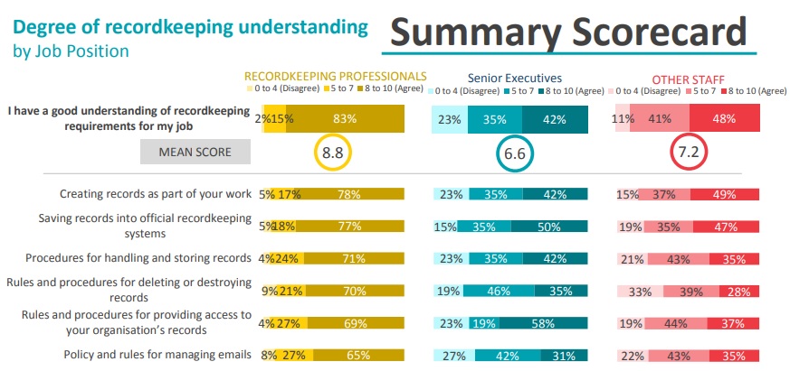In 2018, NSW State Archives and Records' strategic focus is improving understanding of public sector recordkeeping obligations. Benchmarking research was undertaken to provide baseline information on how well people working for State and Local government agencies, local health districts and universities in NSW understand their government recordkeeping obligations. The study included insights from senior responsible officers (SROs) on current recordkeeping practices and pain points within organisations.